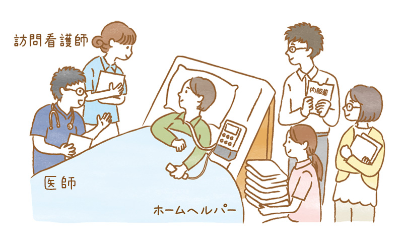 がんによる体や心の辛さをやわらげ、穏やかに自分らしく過ごせるようにご自宅での緩和ケアをチームで支えます。