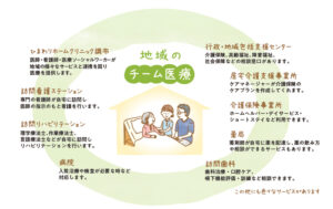 私たちは、医師・看護師・リハビリスタッフなど多職種で連携し、安心して在宅療養ができるようサポートしています。